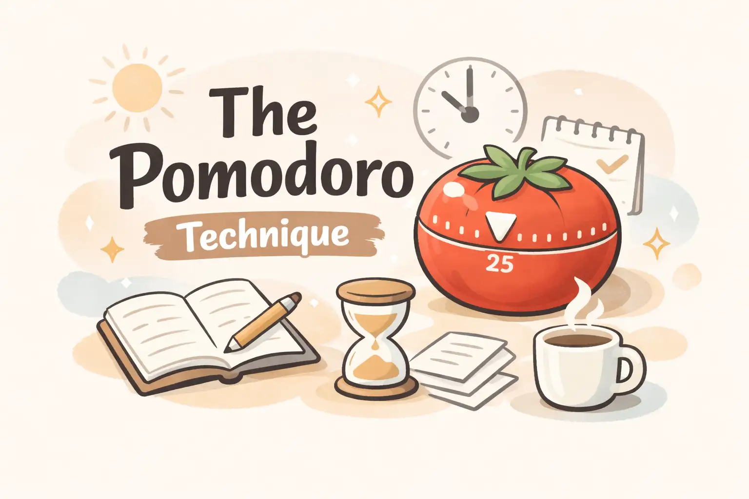 The Pomodoro Technique is a time management method created by Francesco Cirillo in the late 1980s. While studying, he noticed he struggled to stay focused for long periods, so he experimented with working in short bursts using a kitchen timer shaped like a tomato — pomodoro in Italian.