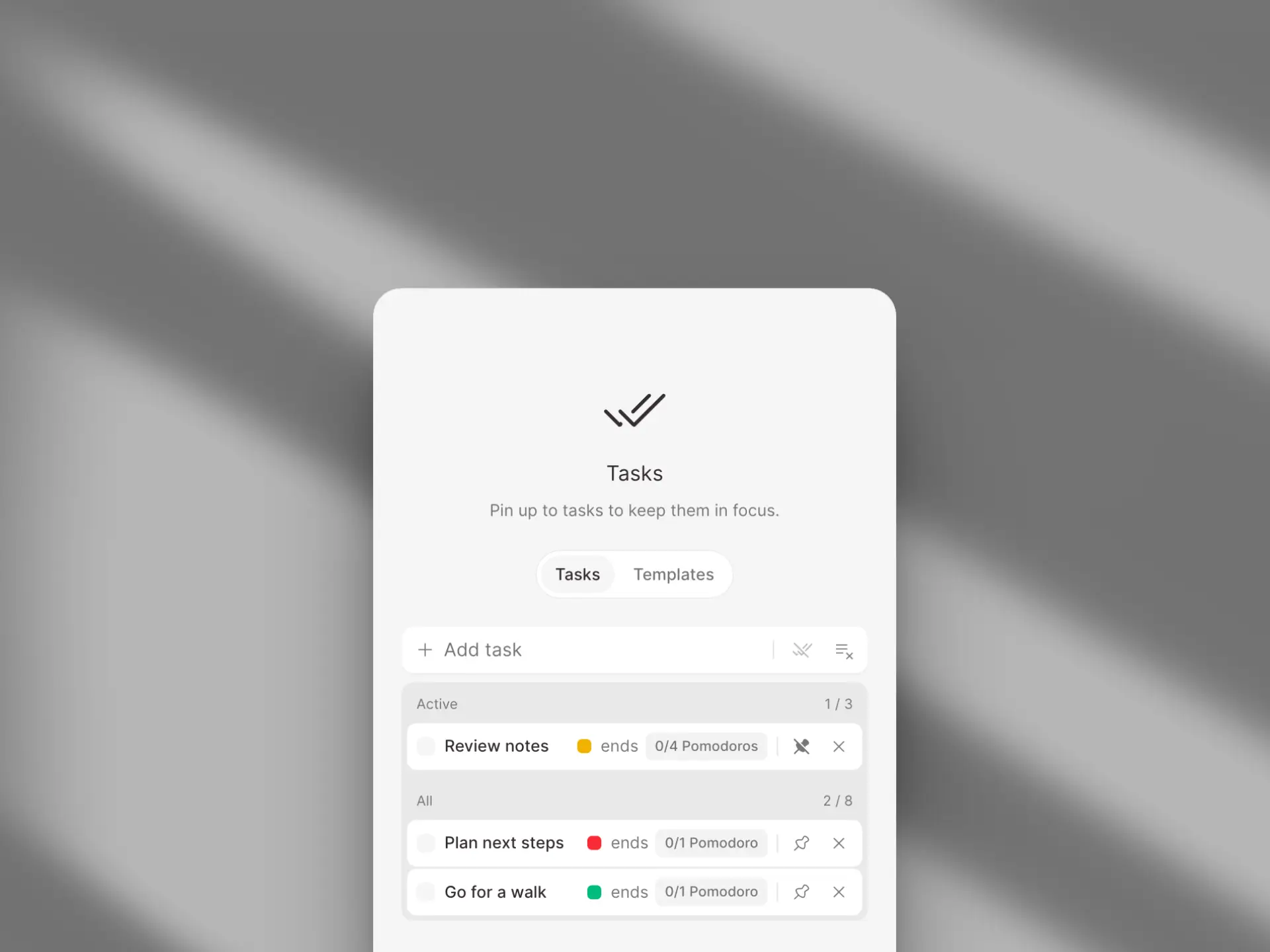 - Create tasks, Pomodoro estimates, and completion tracking.feature